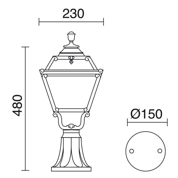 Sobremuro clásico IP55 negro, fabricado en resina apto para atmósfera marina. 1 x E27 (no incl.)