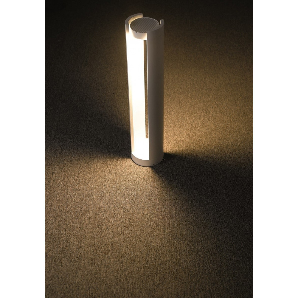 Lámpara baliza modelo NURE. Cuerpo fabricado en aluminio y acabado en blanco. Difusor de cristal matizado. Grado de protección IP65 y aislamiento de clase I. Luminaria con tecnología led.