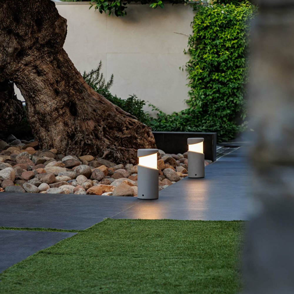 BLOCK es una colección de iluminación exterior diseñada por Àlex&Manel Lluscà. Toda la serie está fabricada en cemento y tiene forma ovalada. Esta baliza, con difusor de policarbonato, también se puede instalar como sobremuro. Su haz de luz queda al centro de la luminaria, perfecta para la iluminación decorativa en jardines y terrazas.