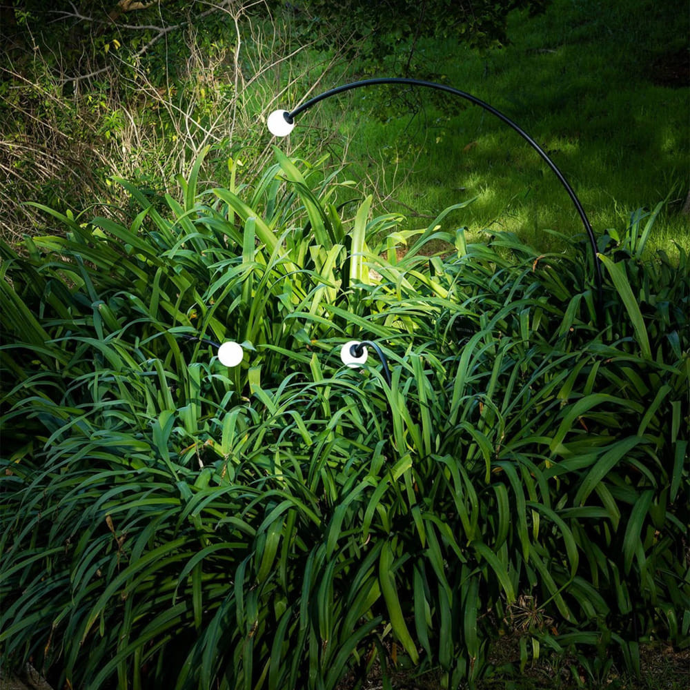 CUCA 650 es una baliza negra de exterior con un diseño altamente decorativo y un toque muy arquitectónico. Diseñada por Faro Lab, su estructura minimalista de acero inoxidable con forma de arco de medio punto eleva y desplaza una pequeña bola de luz generando espacios escenográficos elegantes y minimalistas. Como en un espejismo, al anochecer parece que los puntos de luz flotan en el espacio a diferentes alturas, desapareciendo la estructura casi en su totalidad. Disponible en dos alturas para que se puedan crear composiciones de lo más originales.