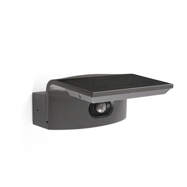 Baliza de 30 cm gris oscuro con sensor PIR y tecnología híbrida; solar y 230V. 5W, 3000K, 525 lm, CRI80, IP65