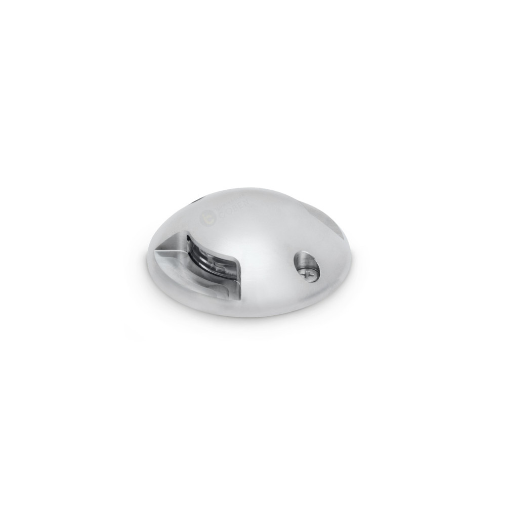 Adecuado para instalación en el suelo y en la pared para uso en el exterior. Fijación directa al suelo o mediante una caja para empotrar que se suministra por separado. Producto diseñado para el uso de fuentes de luz LED para iluminación de advertencia y señalización. Cuerpo y casquillos de aluminio torneado. Difusor de policarbonato transparente. Juntas de silicona. 0,5 m de cable de alimentación H05RN-F precableado y bloqueado a través de un prensaestopas de latón niquelado. Tornillería de acero inoxidable A4 o AISI 316L. Equipado con un tope de agua (agua stop) integrado que protege el producto de la infiltración de agua y humedad.