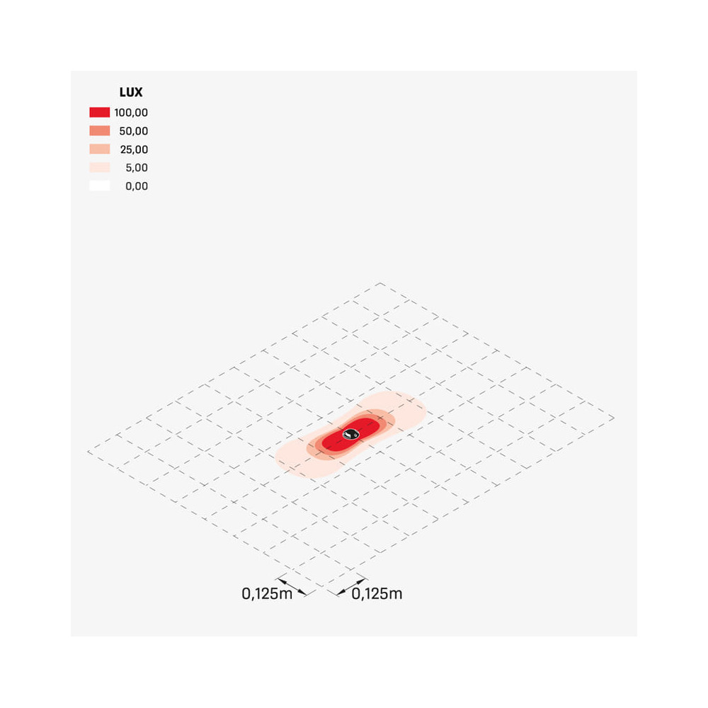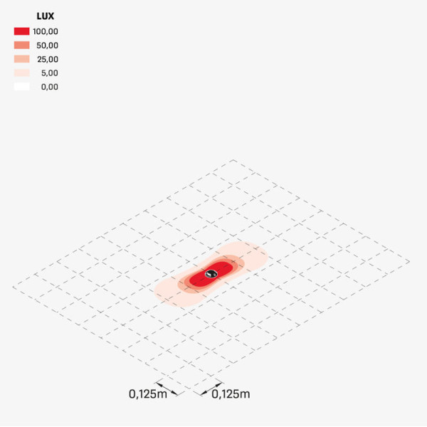 Se obtienen, de esta manera, efectos interesantes que el proyectista puede aprovechar para realizar sugestivos recorridos luminosos, cuando la guía luminosa no es solamente un servicio funcional para la seguridad, sino un verdadero protagonista del proyecto de light design. La versión foco “Swing” puede combinarse también con un piquete para la iluminación de detalles en jardines o setos.