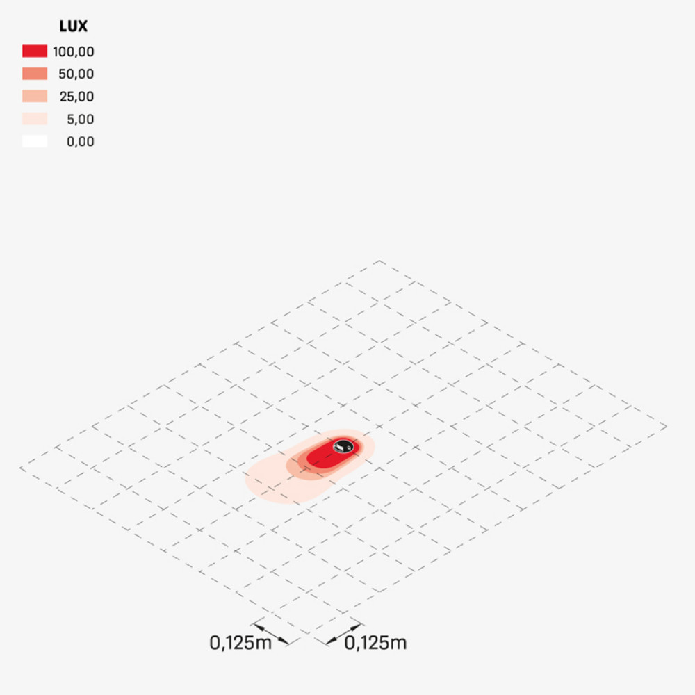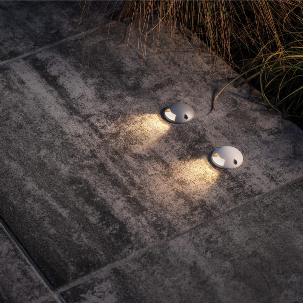 Se obtienen, de esta manera, efectos interesantes que el proyectista puede aprovechar para realizar sugestivos recorridos luminosos, cuando la guía luminosa no es solamente un servicio funcional para la seguridad, sino un verdadero protagonista del proyecto de light design. La versión foco “Swing” puede combinarse también con un piquete para la iluminación de detalles en jardines o setos.