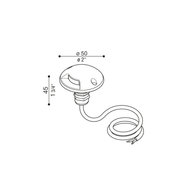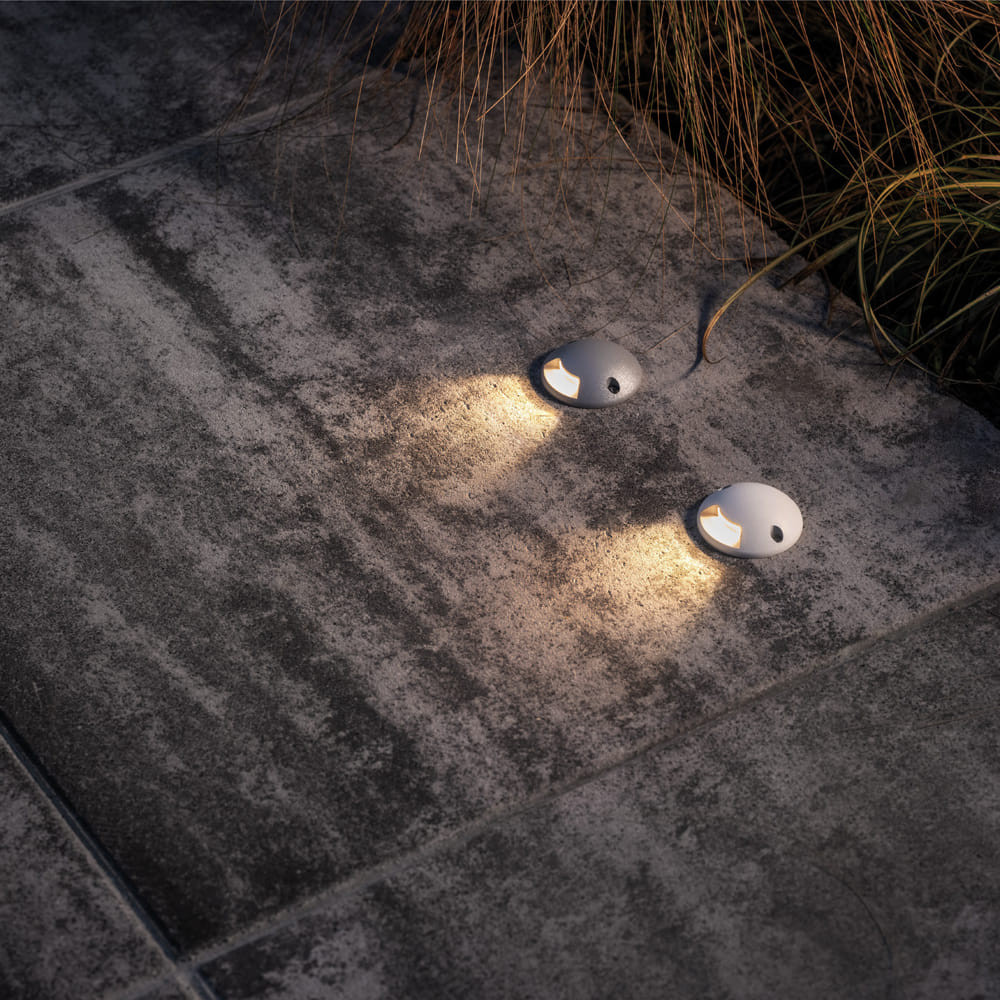 Adecuado para instalación en el suelo y en la pared para uso en el exterior. Fijación directa al suelo o mediante una caja para empotrar que se suministra por separado. Producto diseñado para el uso de fuentes de luz LED para iluminación de advertencia y señalización. Cuerpo y casquillos de aluminio torneado. Difusor de policarbonato transparente. Juntas de silicona. 0,5 m de cable de alimentación H05RN-F precableado y bloqueado a través de un prensaestopas de latón niquelado. Tornillería de acero inoxidable A4 o AISI 316L. Equipado con un tope de agua (agua stop) integrado que protege el producto de la infiltración de agua y humedad.