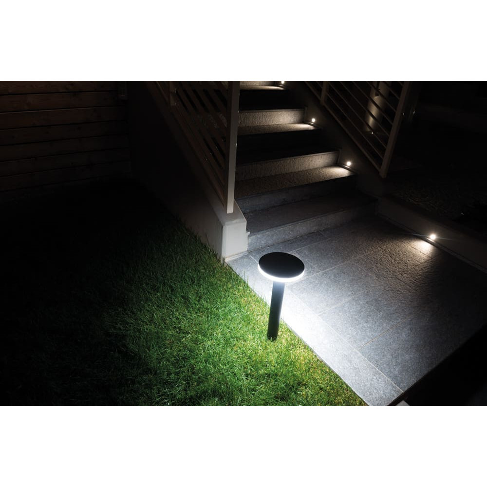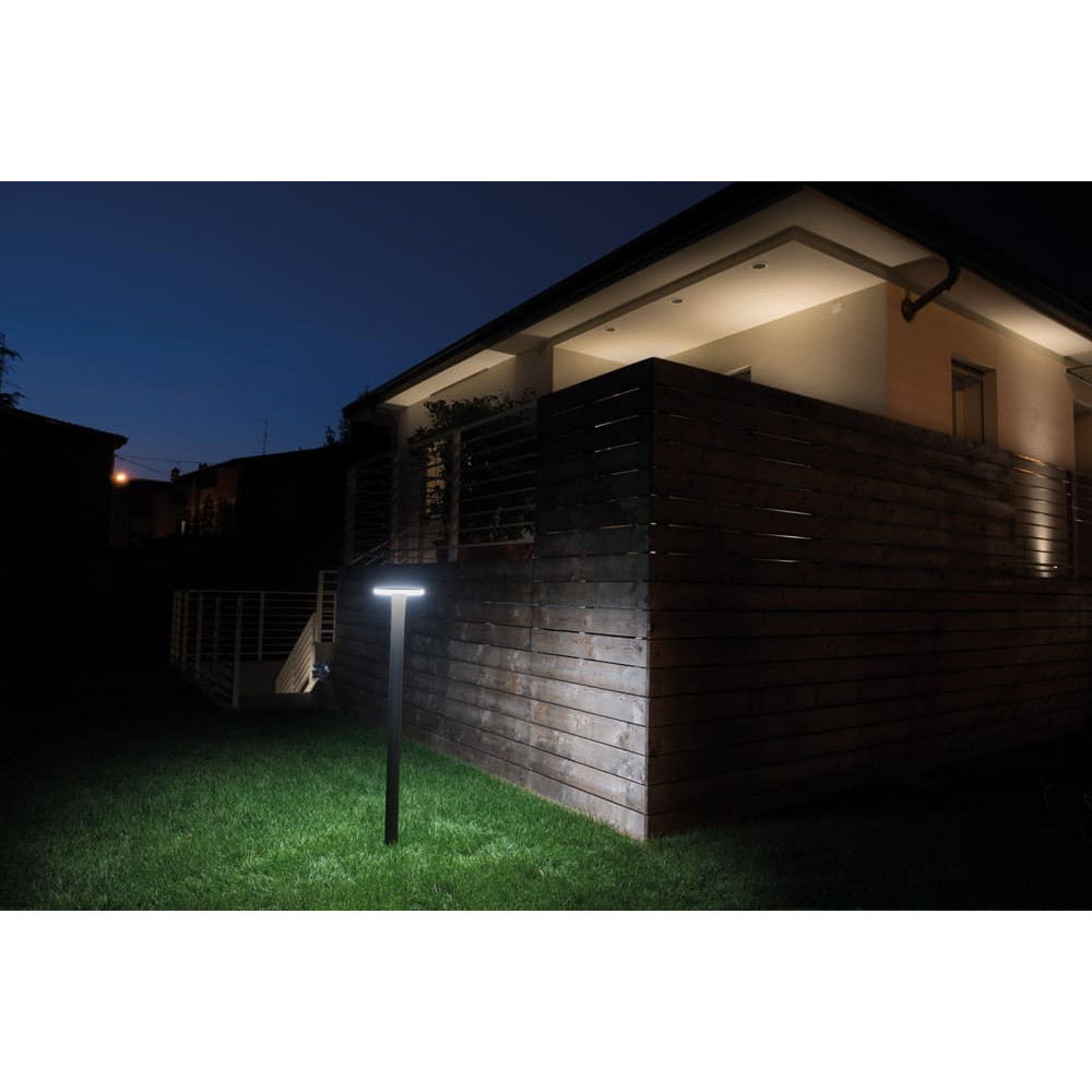 Kit Baliza para exteriores fabricado en aluminio fundido a presión. Funciona con LED integrado de 11W y color de luz cálida (3000K).