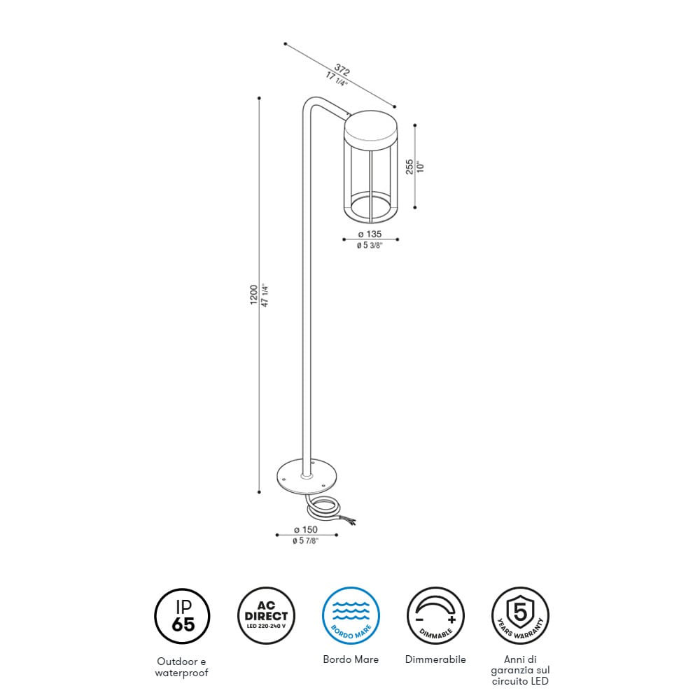 Modelo diseñado para combinar el estilo vintage de las linternas con las prestaciones innovadoras de la tecnología LED. También adecuado para uso exterior e instalación en poste, tallo y pared. IP 65. Difusor en vidrio o policarbonato ópalo con triple estabilización UV. Reflector en aluminio tipo L2-1060. Alimentación integrada AC DIRECT. Amplia selección de temperaturas de color y acabados. Para la versión Lula Tallo en acero con soporte base soldado, herrajes de fijación incluidos; alta resistencia a la oxidación gracias al tratamiento de pasivación a base de circonio y al recubrimiento con resinas de poliéster estabilizadas a los rayos UV. Suministrado con tratamiento "Bordo Mare" ideal para instalaciones en lugares con mayor riesgo de corrosión. Tornillería en acero inoxidable A4. Aparato con garantía plurianual en el circuito LED.