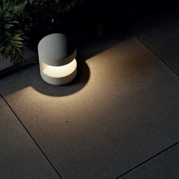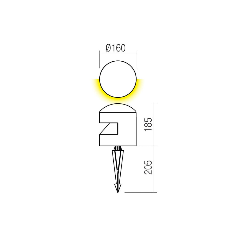 Baliza de hormigón de Ø16cm LED IP65 con estaca incluida, acabado terracota. 8W, 2700K/3000K, 360º, CRI90, 230V