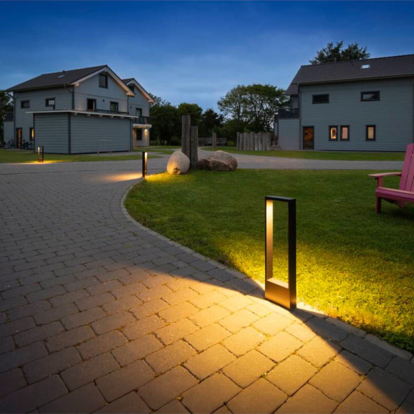 La familia de luminarias FLATT II combina un diseño moderno con una alta funcionalidad. Las luminarias de montaje en pared y de bolardo son ideales para la iluminación acentuada de fachadas y caminos.