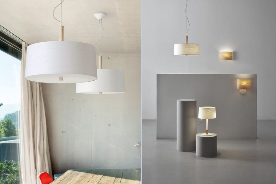 Asimismo, la lámpara colgante Nordic de Massmi es una luminaria de techo con pantalla de haya natural, perfecta para un ambiente cálido.