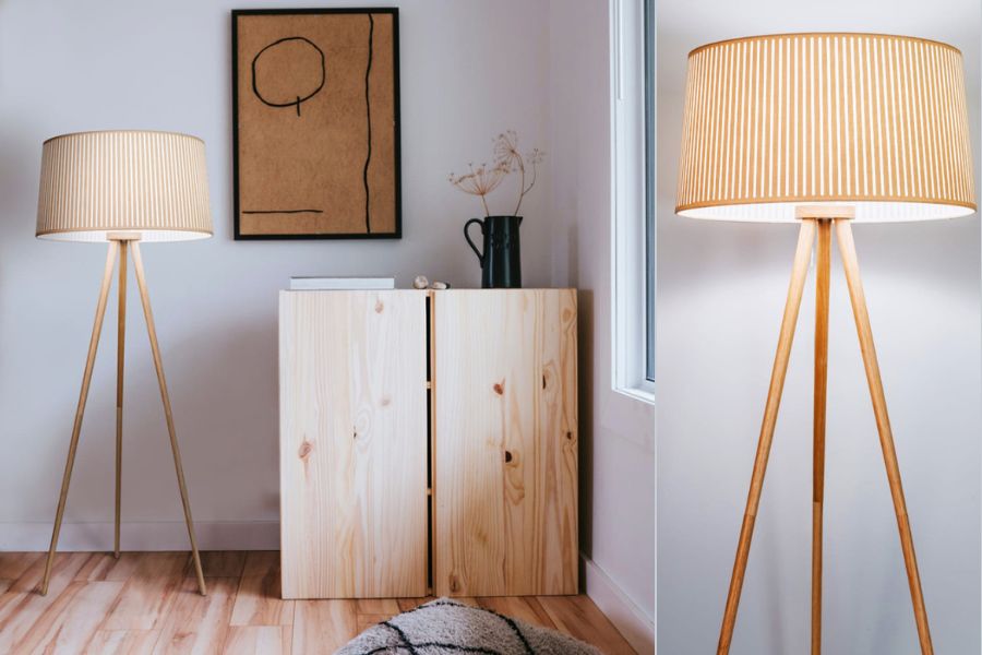En las lámparas de estilo escandinavo predominan los materiales naturales que aportan calidez y autenticidad. La madera clara, especialmente de abedul, haya o roble, es habitual en las estructuras y contribuye a crear ambientes acogedores. En muchos diseños, como las lámparas de mesa, las bases de madera se combinan con pantallas de tela, logrando un contraste equilibrado que transmite sencillez y armonía.