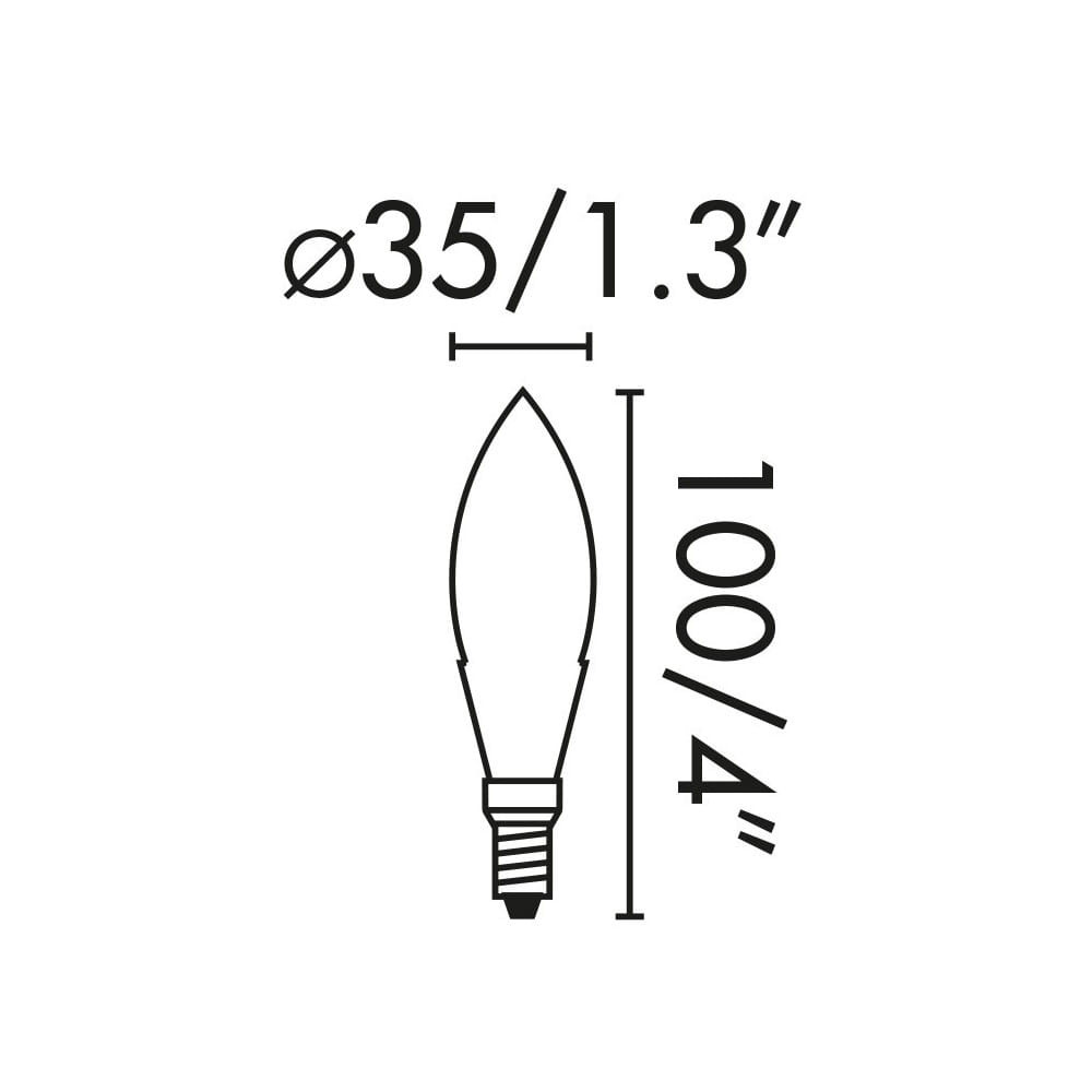 Bombilla de vela mate C35 con casquillo E14. 4W, 2200K, 300lm, CRI90, 360º