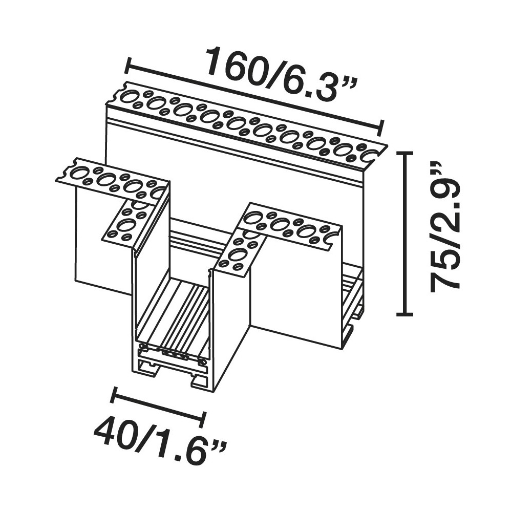 Accesorio T para cambiar la dirección de la estructura de carriles empotrables NESO de color negro. El sistema DALI permite regular la intensidad de la luz.