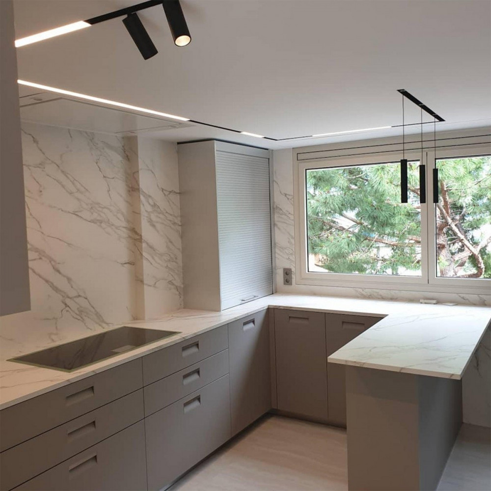 Neso se integra perfectamente en la arquitectura. Puedes instalarlo en techo o pared y hacer todas las combinaciones que quieras. Los carriles están disponibles para instalación empotrada, suspendida y de superficie.