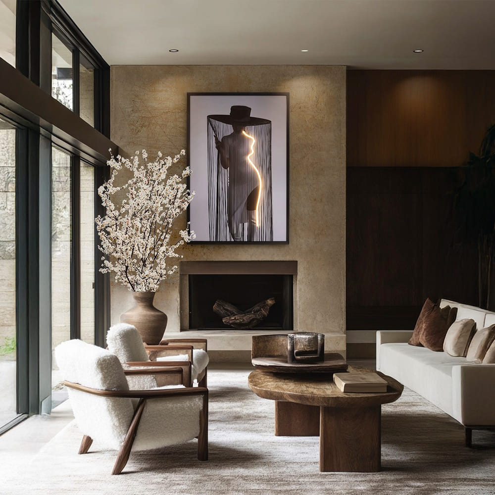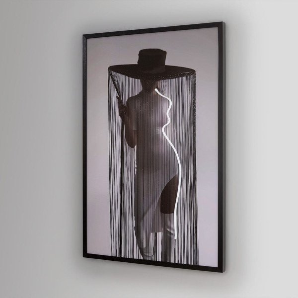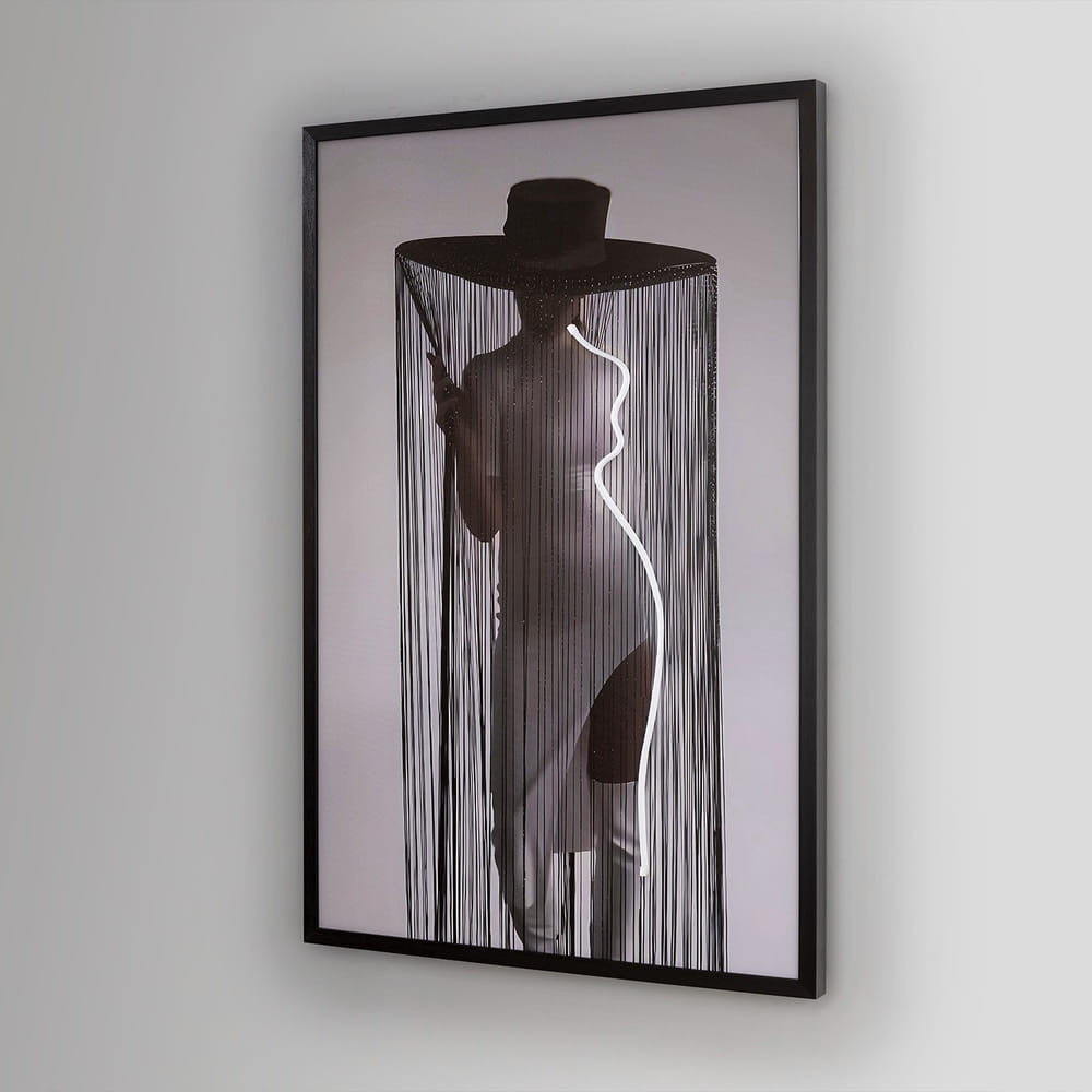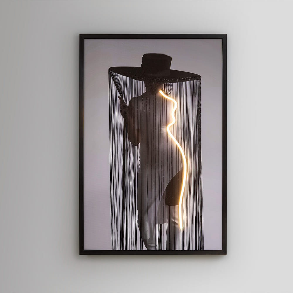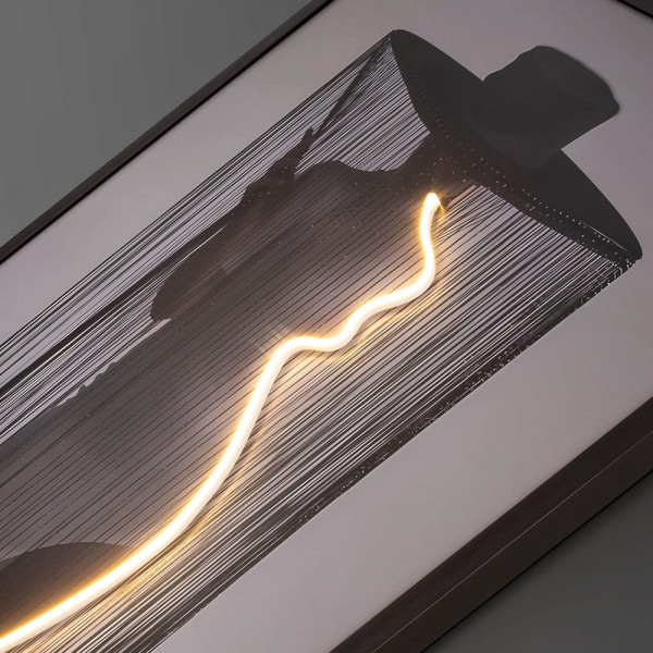 Lienzo de una composición cinética con tira de luz LED decorativa incorporada. Incluye enchufe.