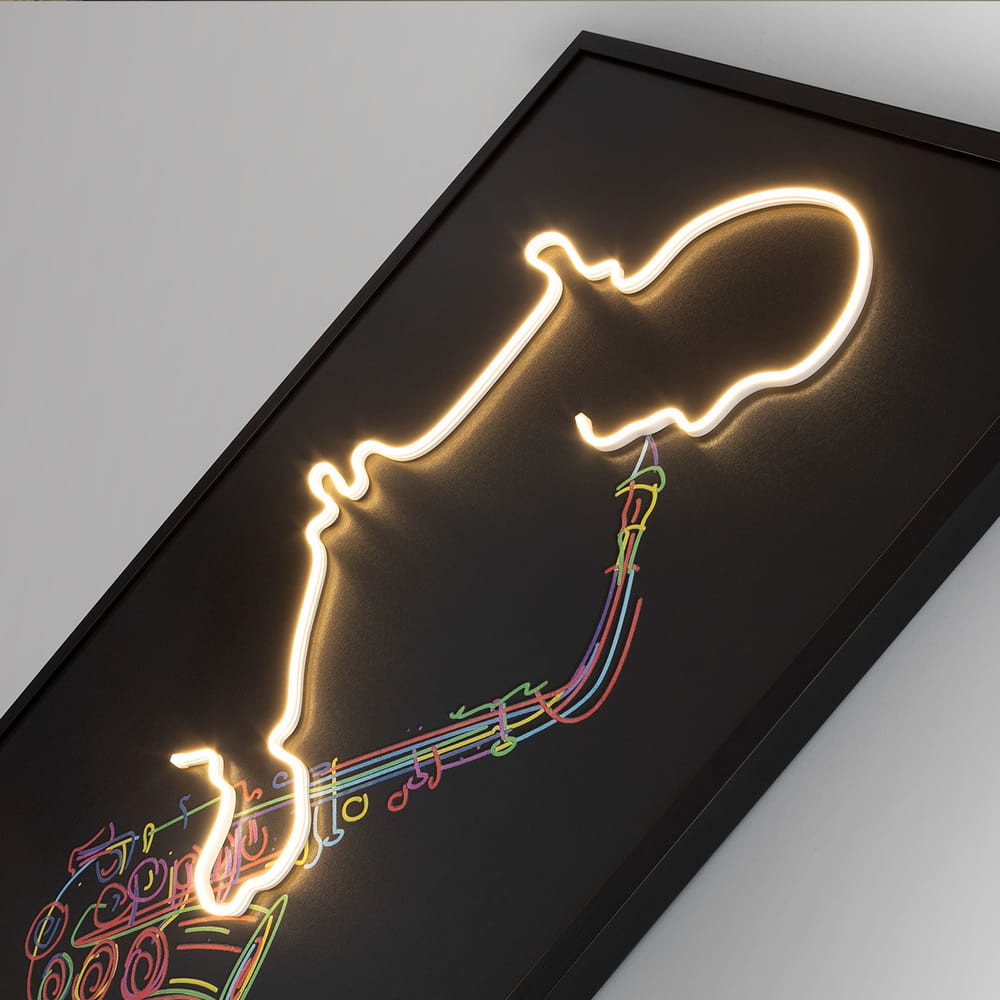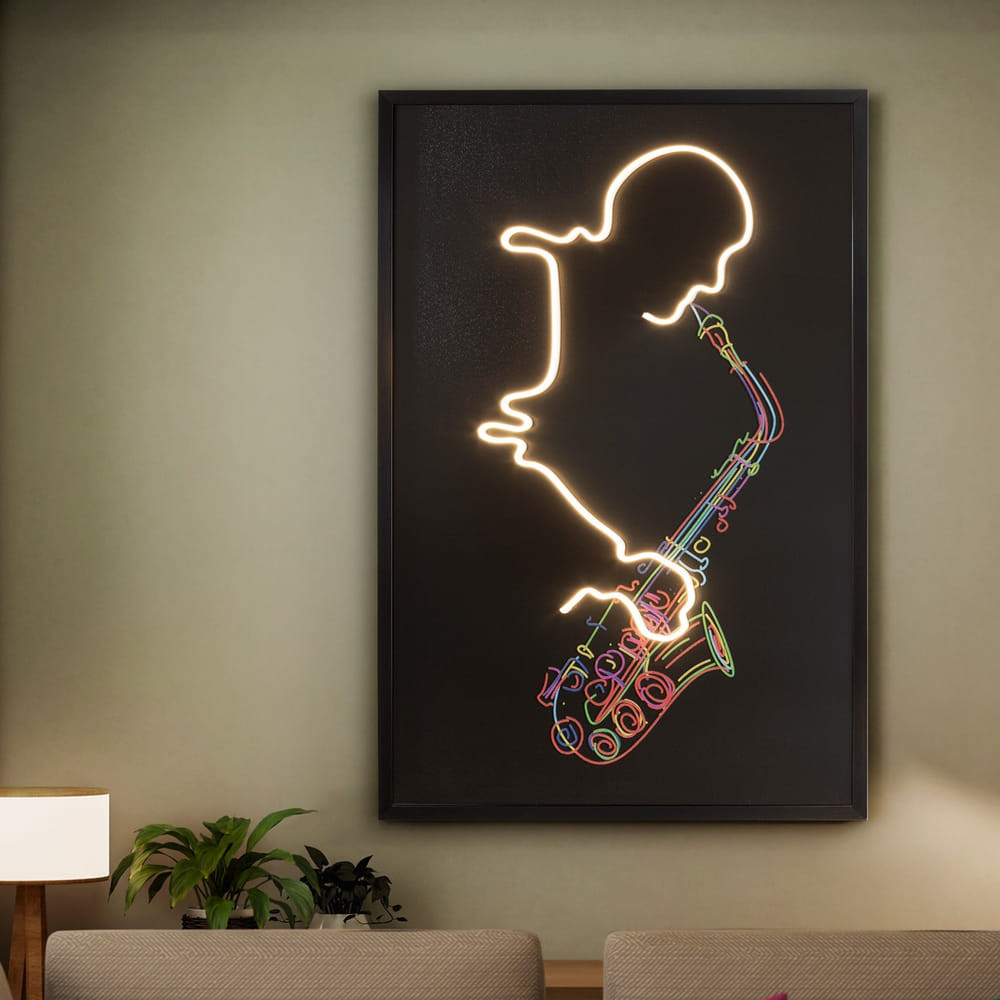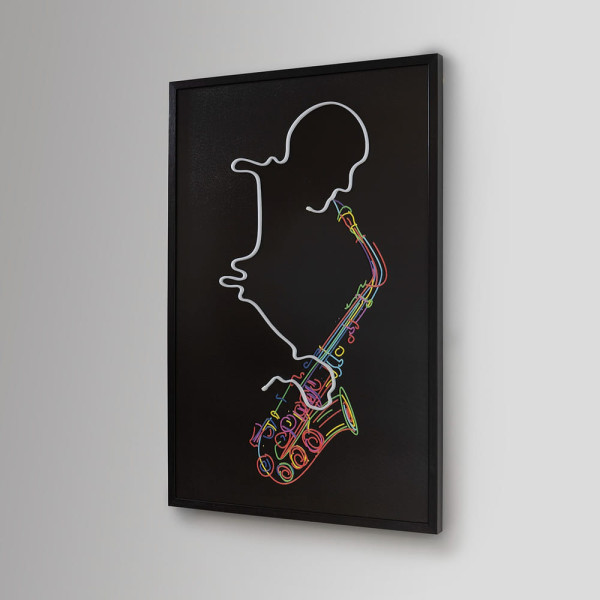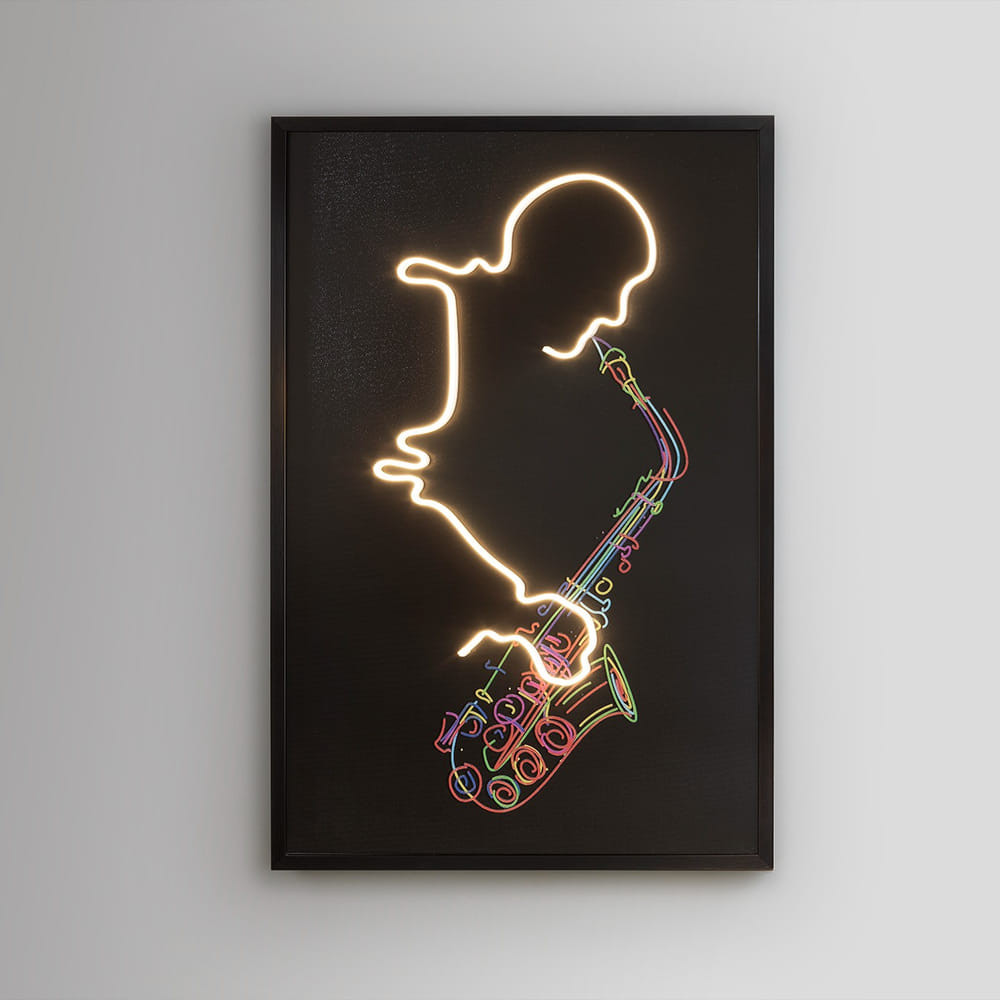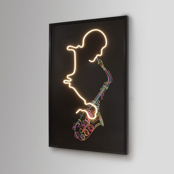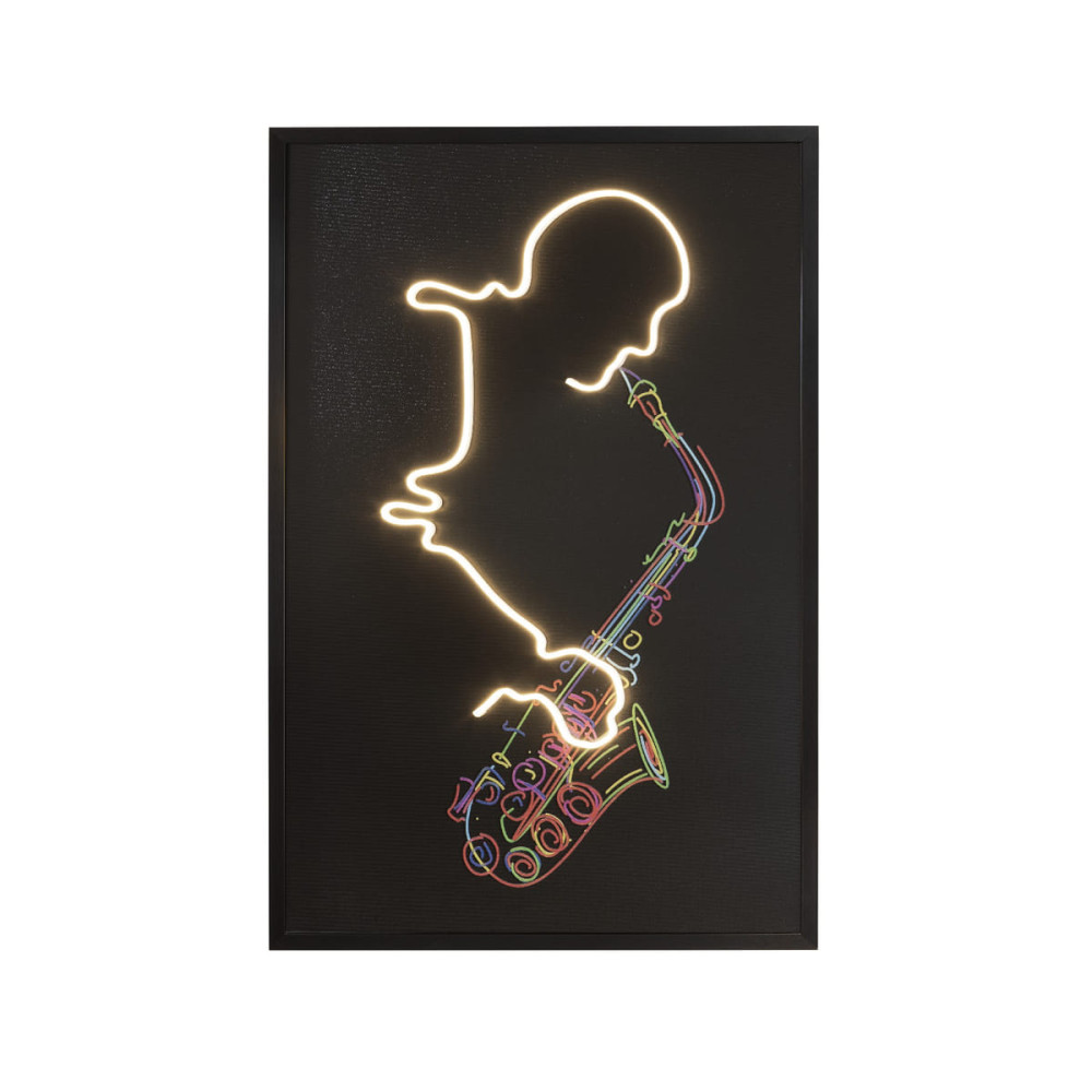 Lienzo de una figura de mujer con sombrero, tira de luz LED decorativa incorporada. Incluye enchufe.