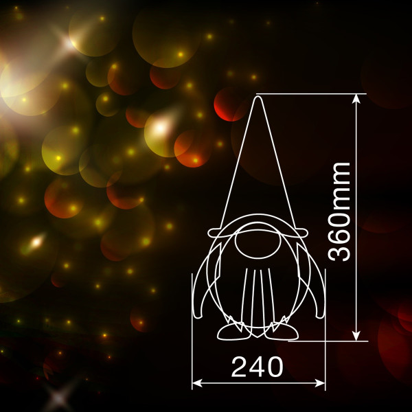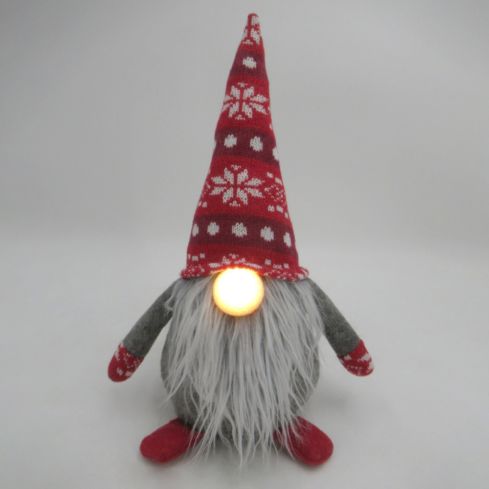 Decoración de navidad, gnomo con luz LED en rojo y gris que funciona con pilas 2xCR2032 incluidas. 36cm