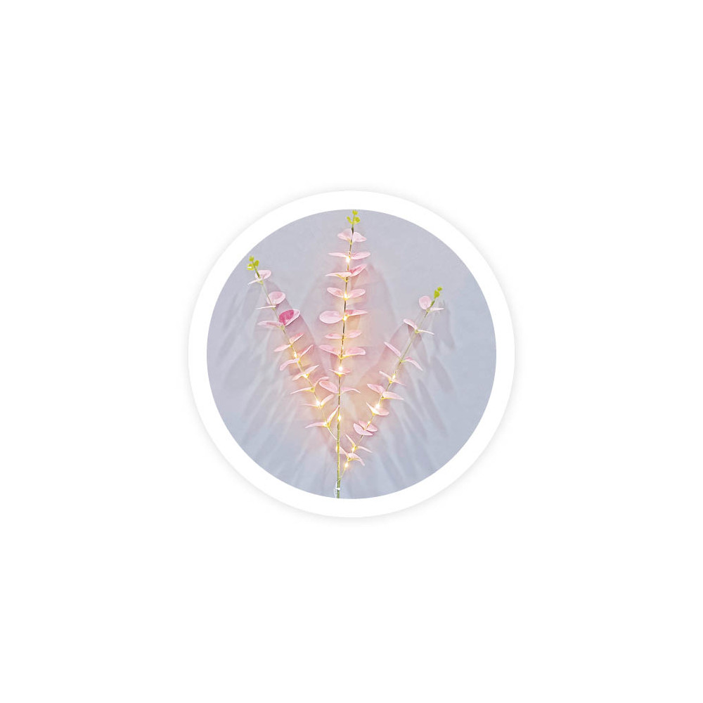 Decoración de navidad, rama LED de hojas de eucalipto rosas que funciona con pilas 2xAA no incluidas. 85cm