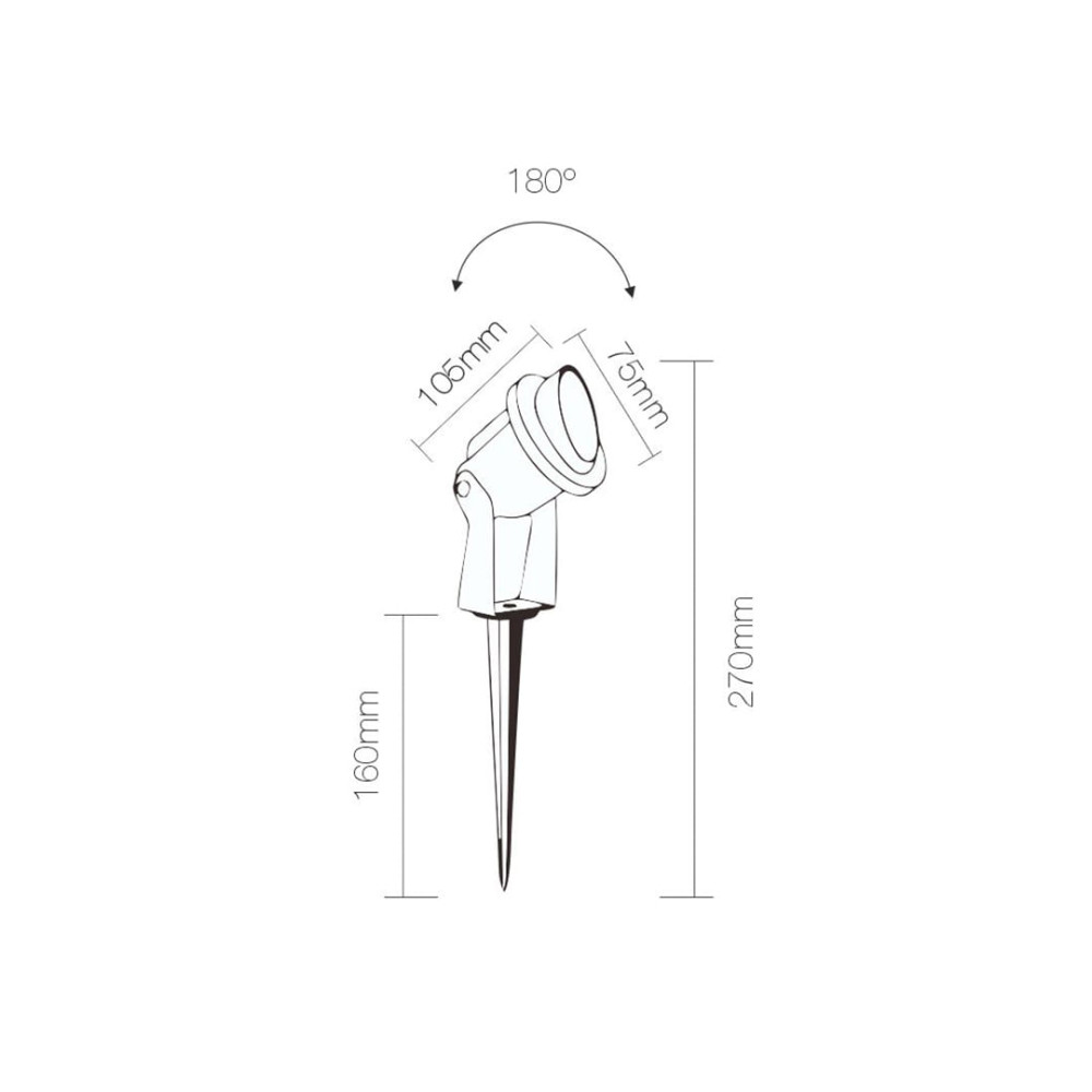 Proyector con estaca de jardín negra IP65 de aluminio. 5W, 2200K, 350lm, 45º