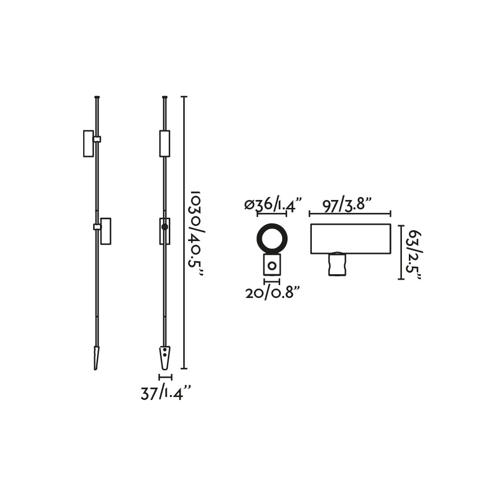 Gracias a un diseño adaptable, minimalista y de dimensiones súper reducidas, Clap está disponible como estaca, baliza, aplique de pared, lámpara colgante y proyector de árbol.