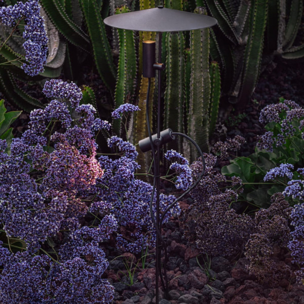 CLAP es un sistema de iluminación de espacios exteriores que destaca por su carácter arquitectónico y multifuncional. Ofrece distintas soluciones de iluminación directa/indirecta con una estética unificada (estacas, balizas, apliques, colgante, proyector árbol, etc.). La estaca CLAP 1030 con pantalla, de estructura y volumen casi invisible, deja todo el protagonismo a la luz de acento, ideal para crear espacios con carácter escenográfico entre la vegetación y efectos de iluminación indirecta. Es de 24V, de color negro, tiene una temperatura de color de 3000K y ángulo de 38°. Puedes combinar los proyectores con la visera antideslumbrante ref. 75714-2 optimizando el confort visual.