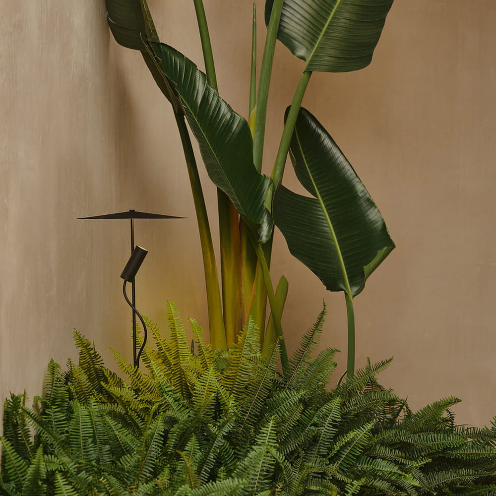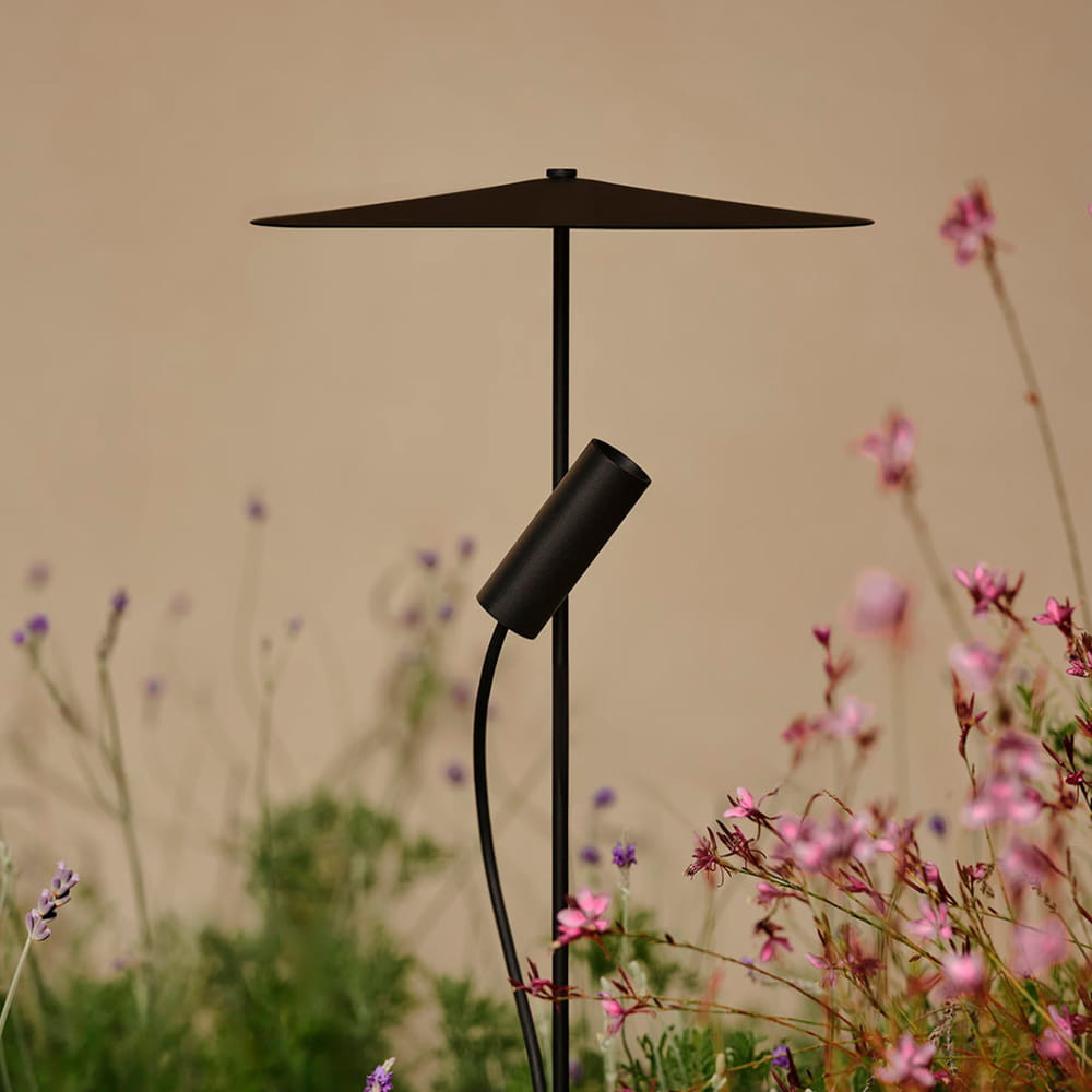 La estaca CLAP 630 con pantalla, de estructura y volumen casi invisible, deja todo el protagonismo a la luz de acento, ideal para crear espacios con carácter escenográfico entre la vegetación y efectos de iluminación indirecta. Es de 24V, de color negro, temperatura de color de 3000K y ángulo de 38°. Puedes combinar el proyector con la visera antideslumbrante ref. 75714-2 optimizando el confort visual.