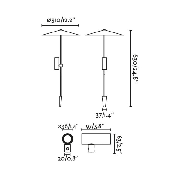 Gracias a un diseño adaptable, minimalista y de dimensiones súper reducidas, Clap está disponible como estaca, baliza, aplique de pared, lámpara colgante y proyector de árbol.