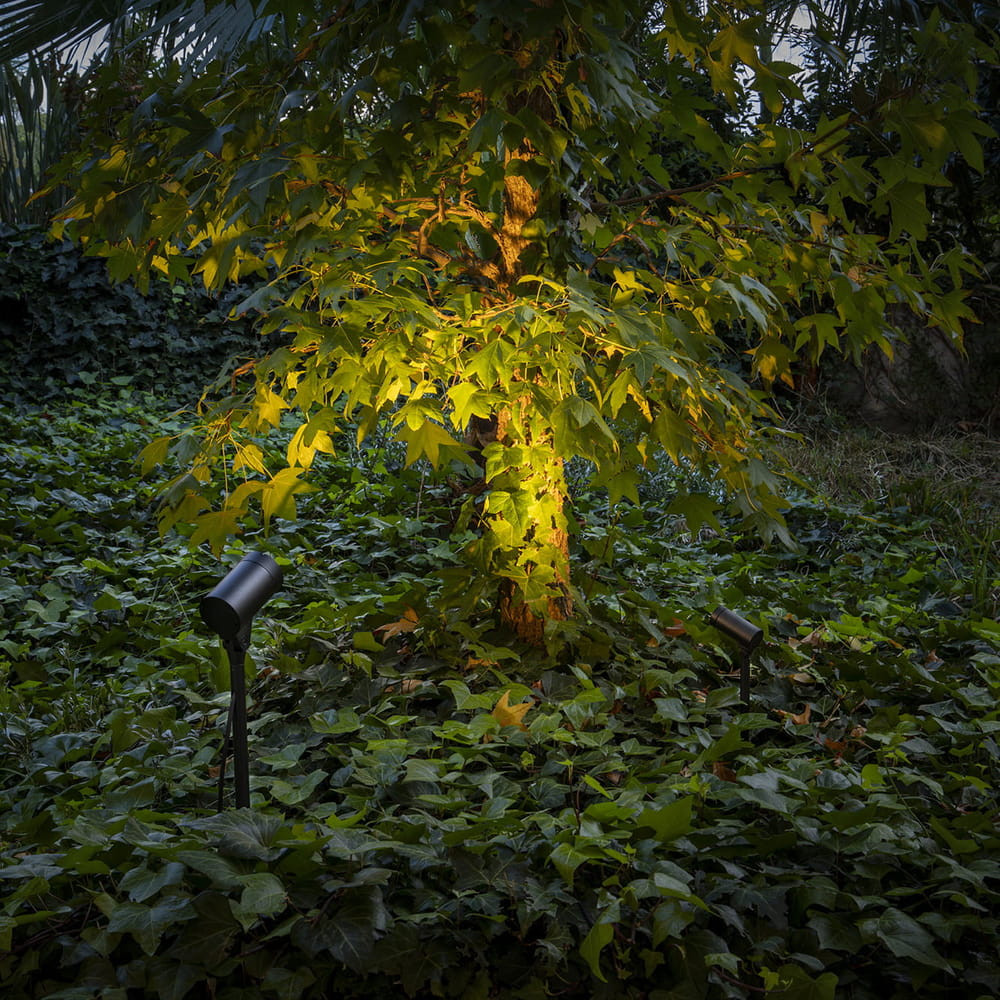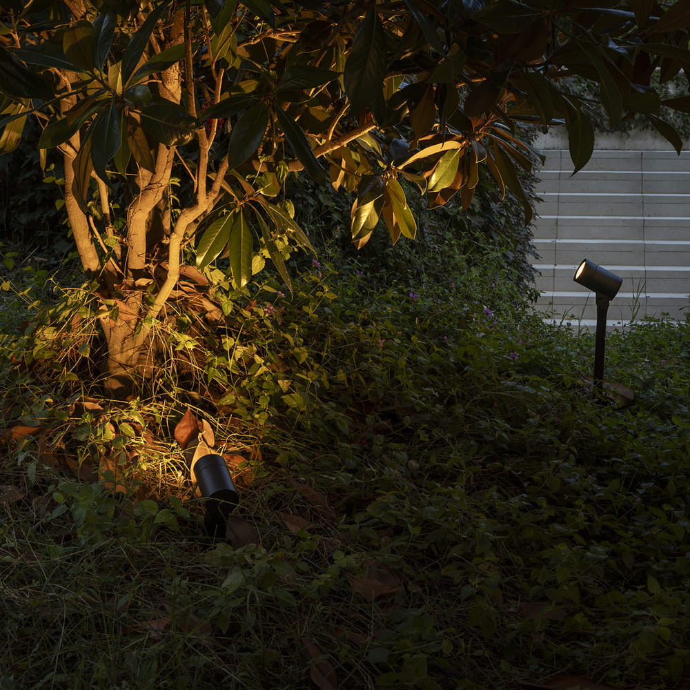 Sau integra en una sola pieza la posibilidad de instalación como baliza o estaca, disponible en versiones LED o GU10, con visor opcional para un control más preciso de la emisión lumínica y un mayor confort visual.