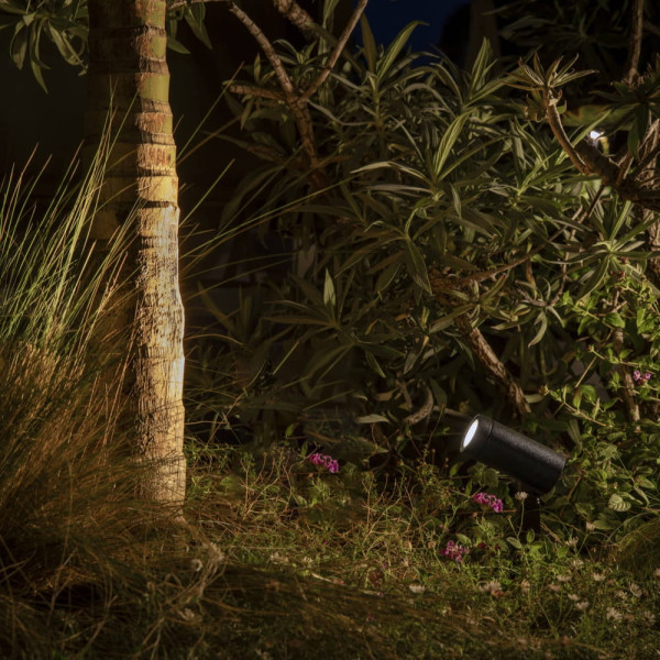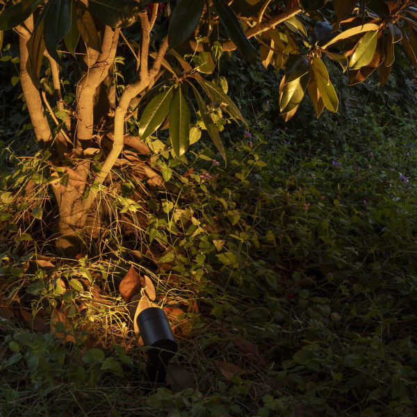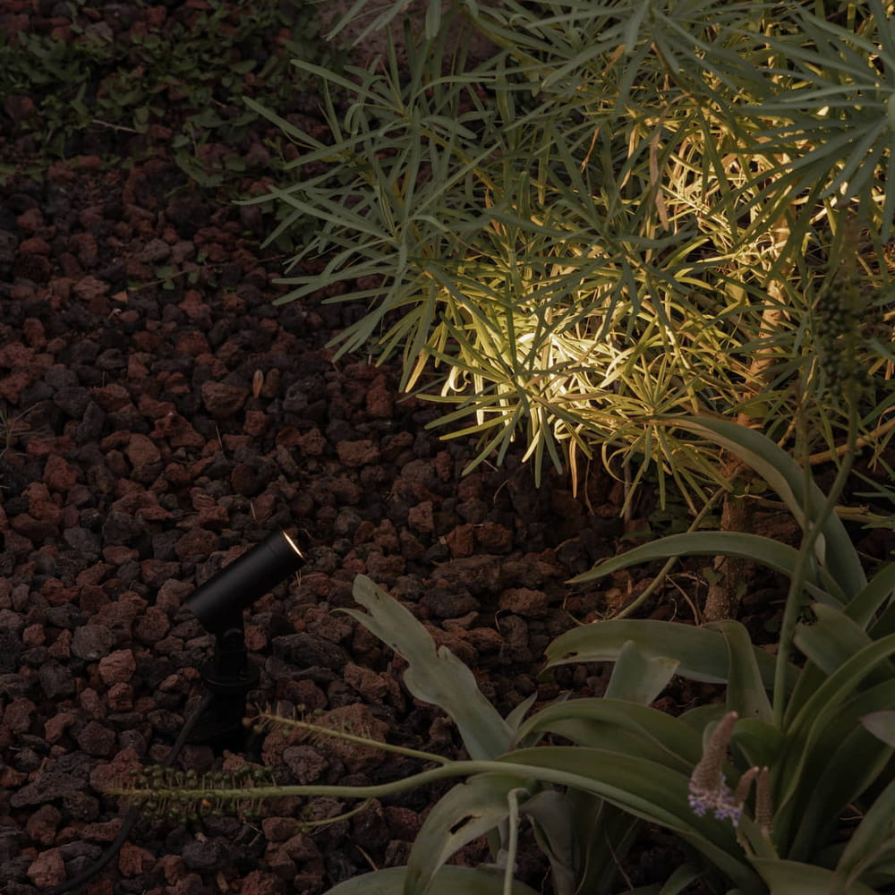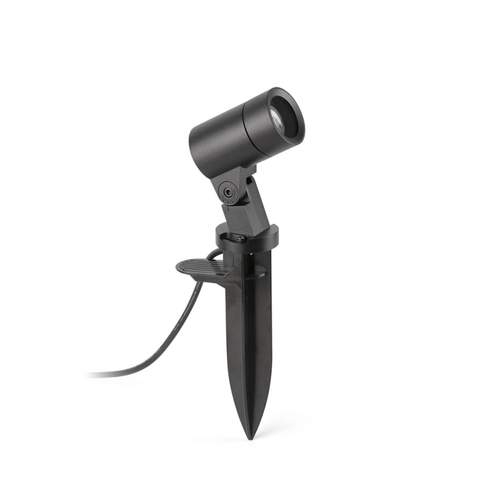 Proyector-estaca LED negro IP65 para exteriores, fabricado en aluminio, funciona a 24V. 2,5W, 3000K, 144lm, CRI90, 30º