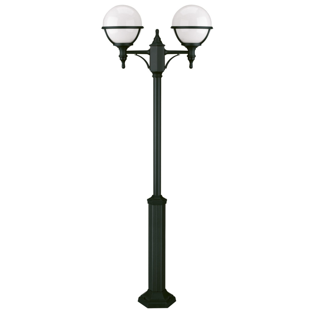 Farola clásica de 192cm con 2 brazos IP44 negra de poliamida con pantallas de policarbonato. 2 x E27 LED - No incluidas