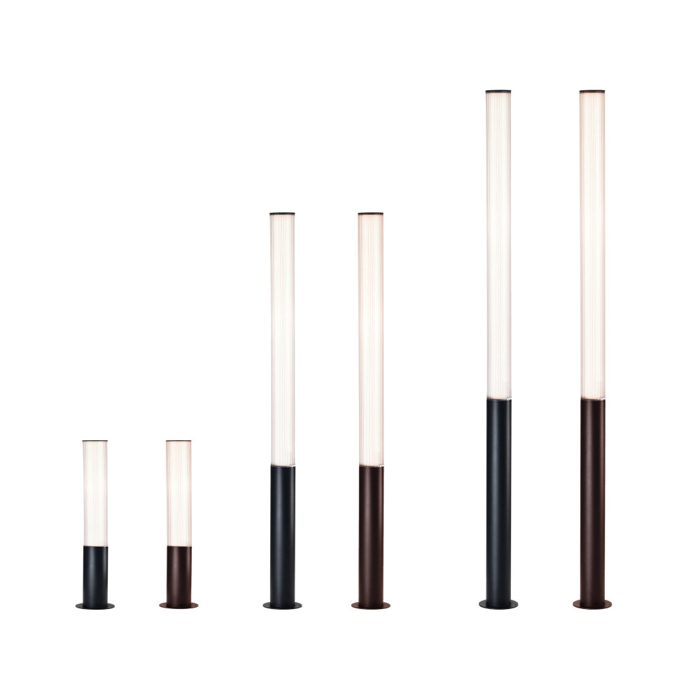 Con un cuerpo de aluminio resistente y un difusor con acabado estriado que suaviza y distribuye la luz, los modelos Gant están disponibles en acabado negro o corten, dos tonos sobrios y elegantes que se adaptan a una amplia variedad de entornos: jardines, terrazas, caminos o entradas residenciales.