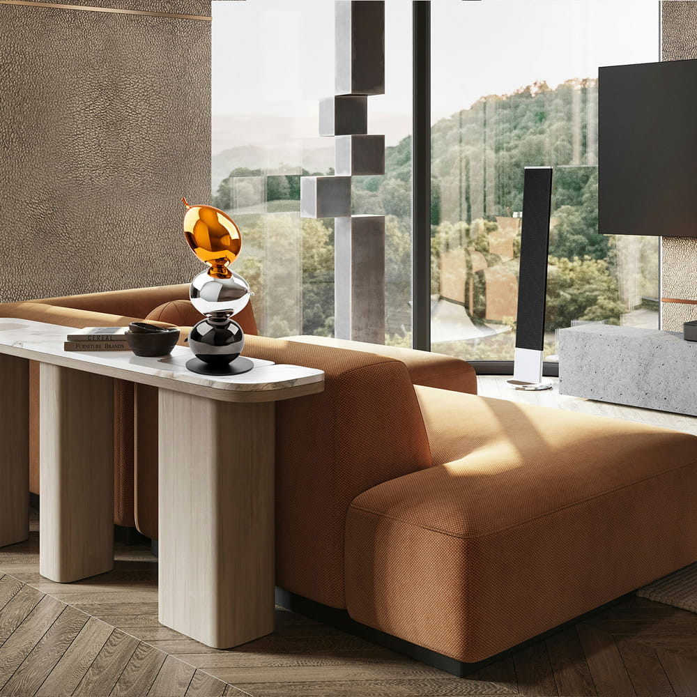 Figura de tres globos, tamaño mediano. Realizada en resina, acabado metalizado naranja, plata y gris plomo.