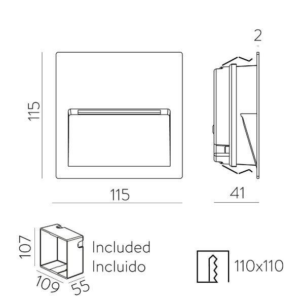 - 115 x 115 x 41 mm