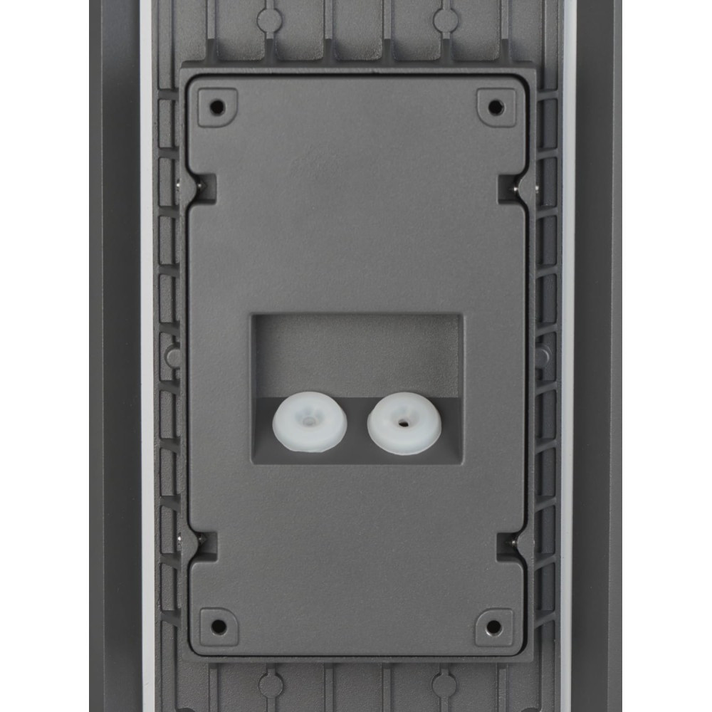 El material de la estructura es de aluminio de alta pureza acabado en color gris. Difusor de cristal acabado mate. Caja de empotrar incluida. Doble salida de cable para poder instalar en serie.