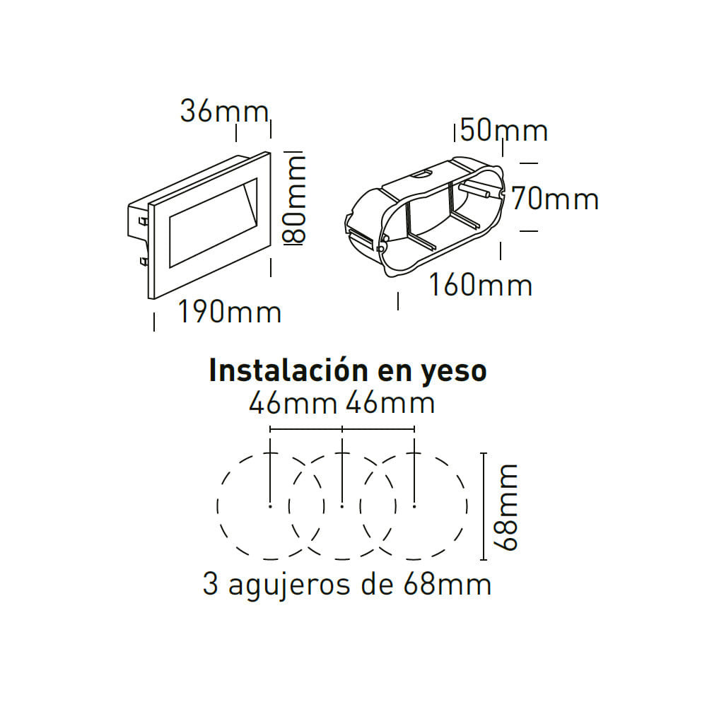 Empotrable de pared LED blanco de 12cm con marco de cristal. 4W, 3000K, 200lm, CRI80