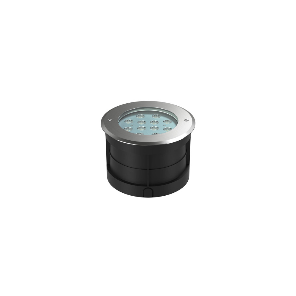 Empotrable de suelo LED IP65 de Ø16cm, acabado níquel cepillado. 12W, 3000K, 650lm, 30º