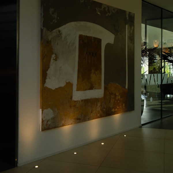 GRUND es un empotrable de pequeñas dimensiones que ofrece una luz cálida y focalizada, ideal para resaltar detalles arquitectónicos en interiores y exteriores.
