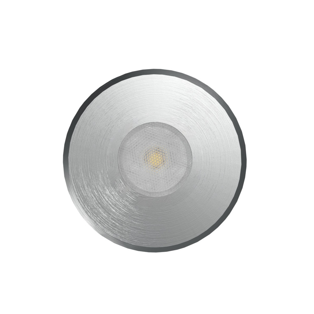 Empotrable de suelo para exterior COBSOIL LED 1,5W, acabado en acero 2700K y lente opal. Fabricado en acero inoxidable 316 y aluminio, tiene una alta resistencia a los golpes de IK08. Es ideal para balizar un camino o bañar una pared en jardines, fincas, y cualquier zona de paso a la intemperie. Incluye la caja para empotrar. Disponible en diferentes ángulos de apertura (15° - 25° - 40° - OPAL) y en diferentes temperaturas de color ( 2700K y 4000K)