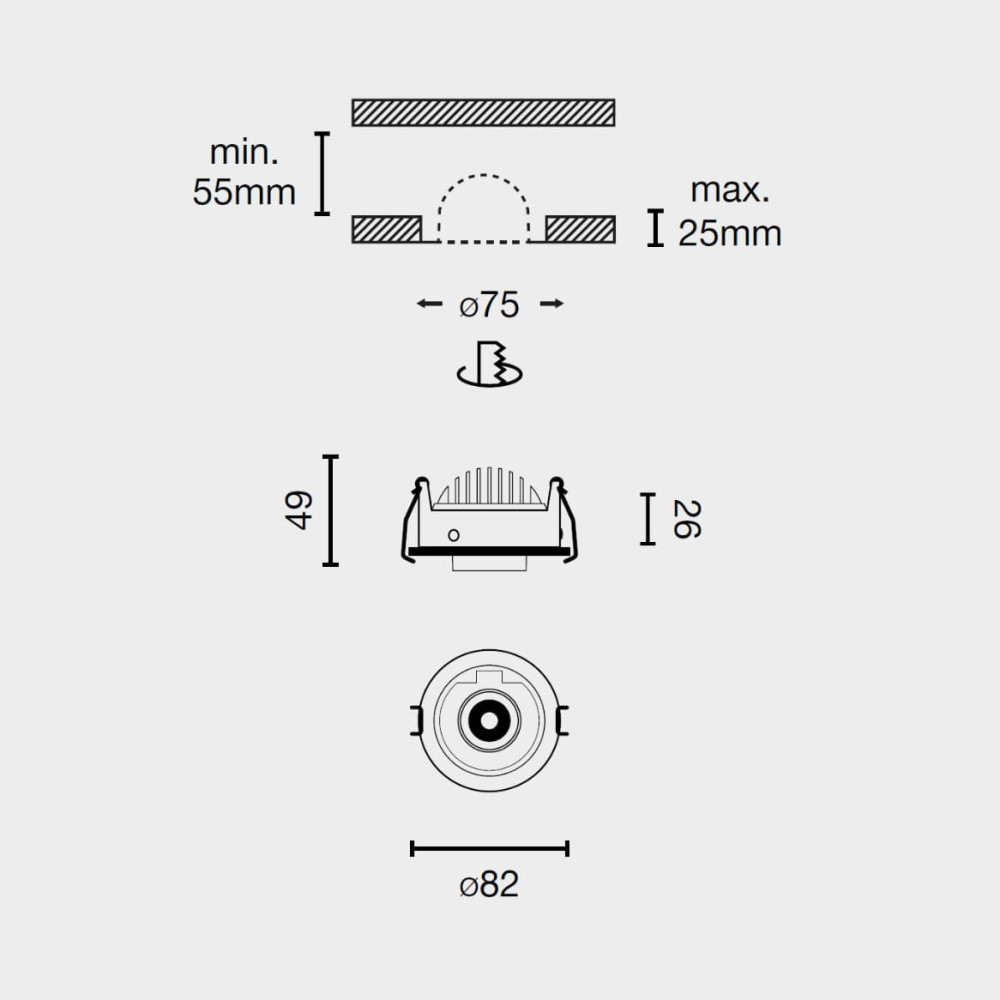 ALIA es una colección de luminarias técnicas ideal para instalaciones en techos con una baja cota de empotramiento. Gracias a su capacidad para ser direccionado, puede utilizarse como downlight o como proyector.