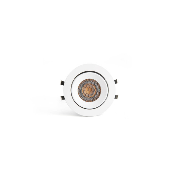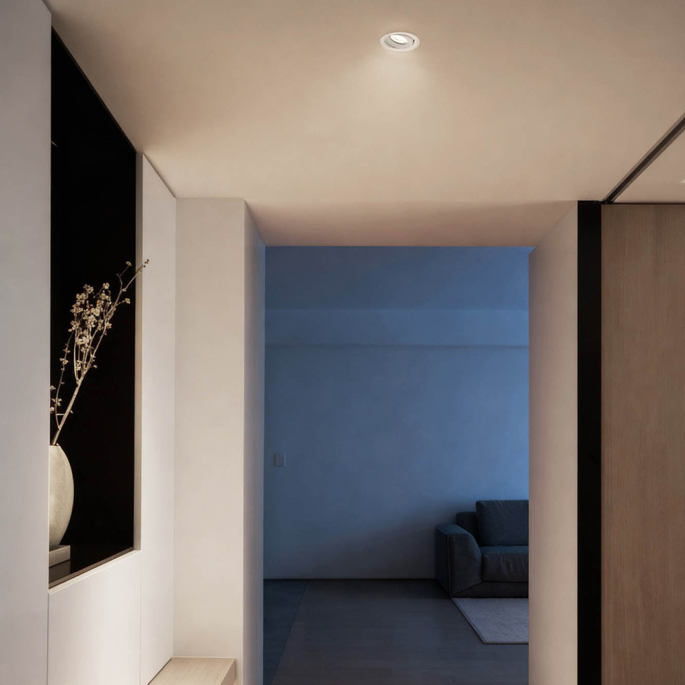 KIVI es un empotrable orientable blanco redondo con 5W, 2700K, driver dimable y protección IP44, apto para zonas húmedas como baños.