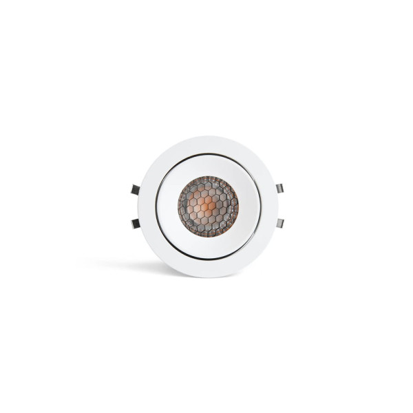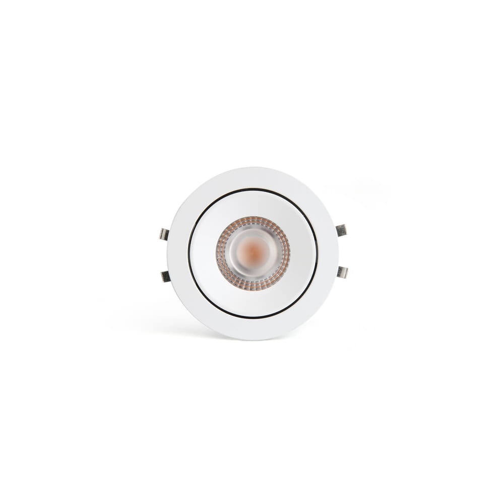 KIVI es un empotrable orientable blanco redondo con 7W, 3000K, driver dimable y protección IP44, apto para zonas húmedas como baños.
