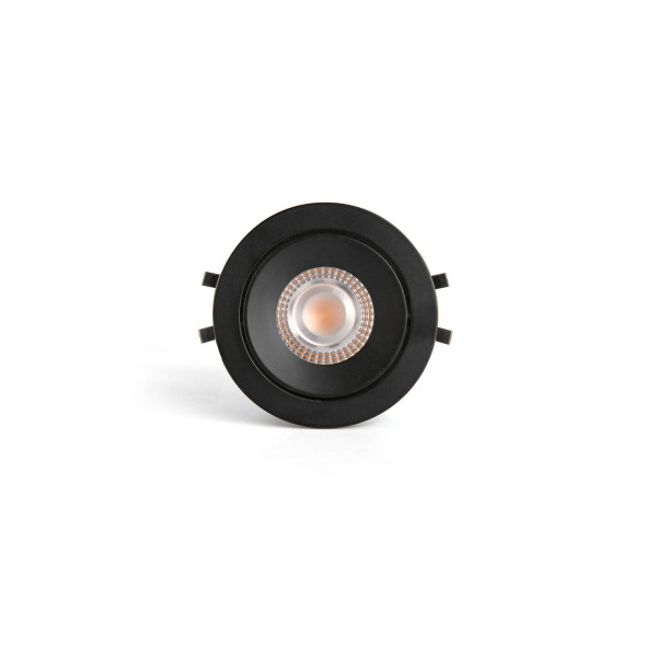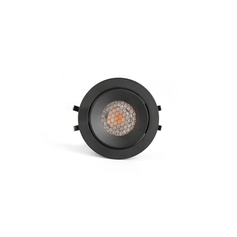 KIVI es un empotrable orientable negro redondo con 7W, 3000K, driver dimable y protección IP44, apto para zonas húmedas como baños.