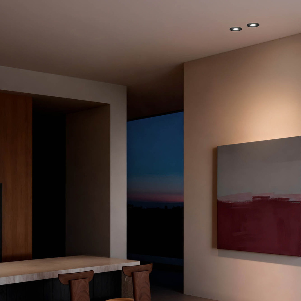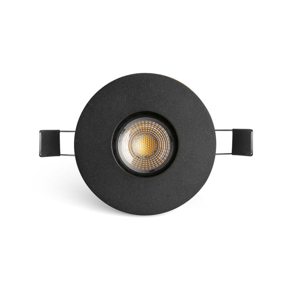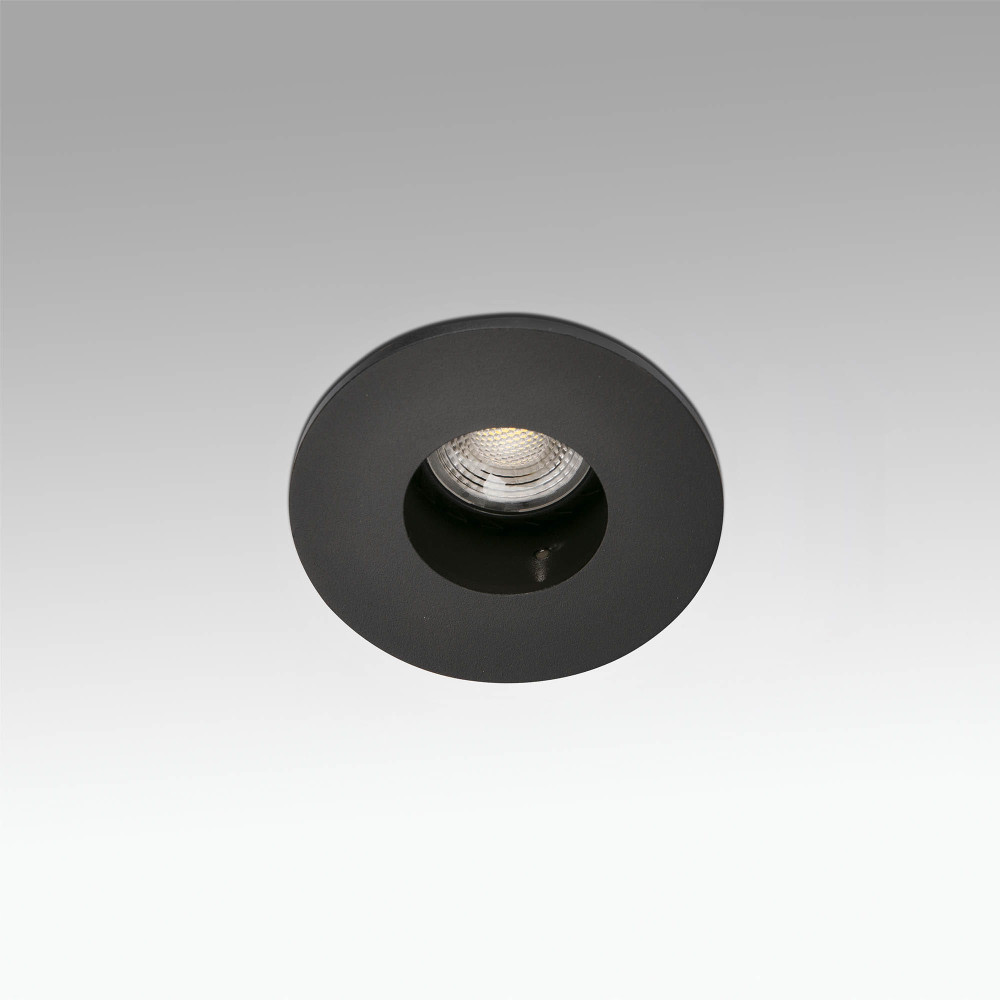 NIVA es un empotrable pinhole fijo negro para bombilla o módulo LED, apto para interiores con protección IP20.