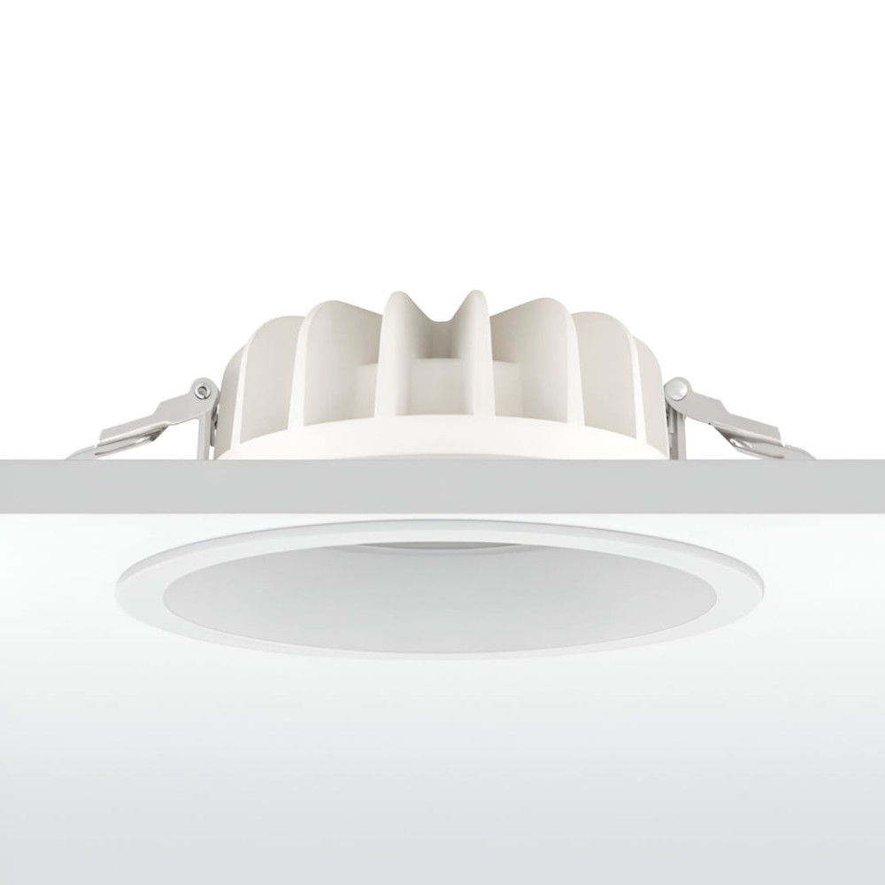Adecuado para su instalación en techos de cartón-yeso para uso interior y exterior. Cuerpo de policarbonato. Disipador primario de aluminio fundido a presión EN-AB44100. Difusor de policarbonato transparente.