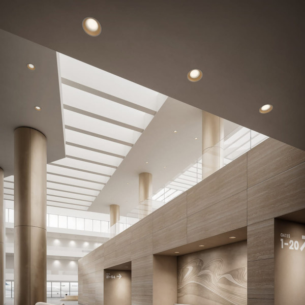 Adecuado para su instalación en techos de cartón-yeso para uso interior y exterior. Cuerpo de policarbonato. Disipador primario de aluminio fundido a presión EN-AB44100. Difusor de policarbonato transparente.