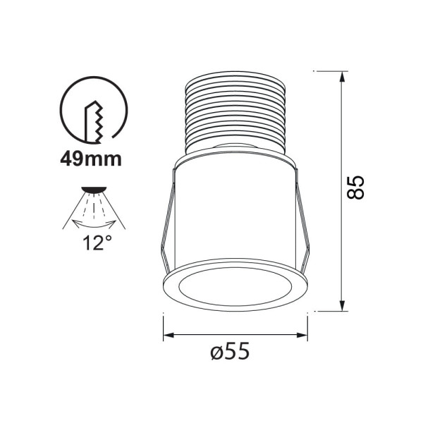Empotrable de techo blanco LED pequeño Ø55mm. 5W, 4000K, 410lm, 12º
