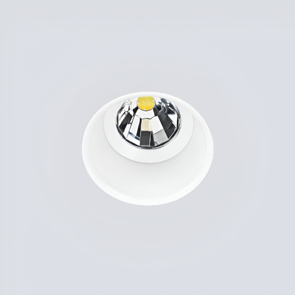Luminaria empotrable fija de base circular diseño rehundido, especial para mejorar el confort visual quedando integrada en la superficie de montaje.
