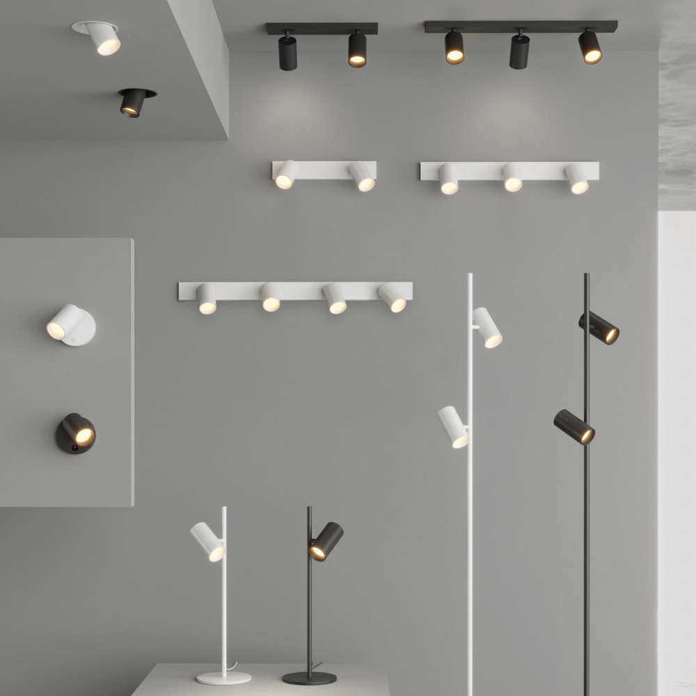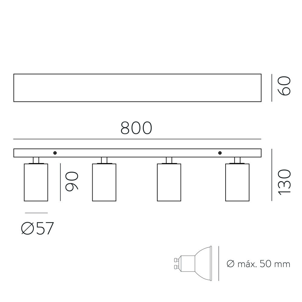 Gina es una regleta acabada en negro texturado orientable de 4 luces GU10, no incluidas.