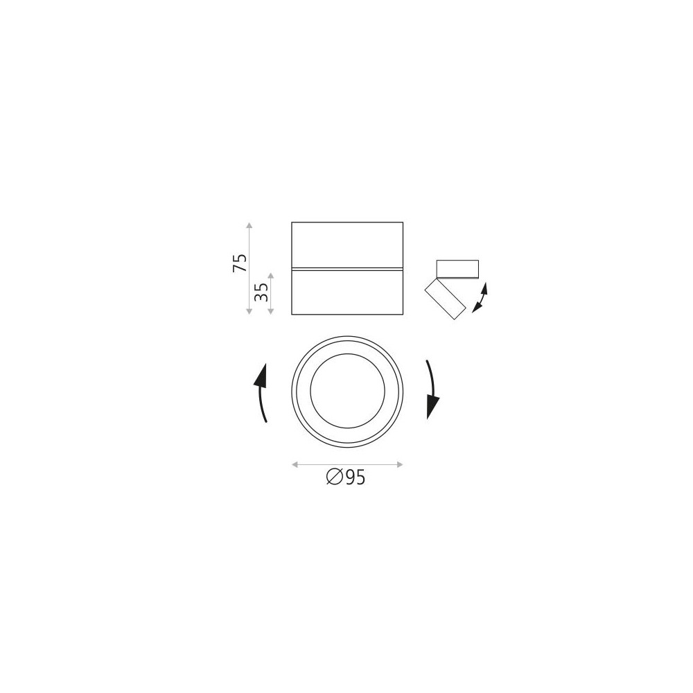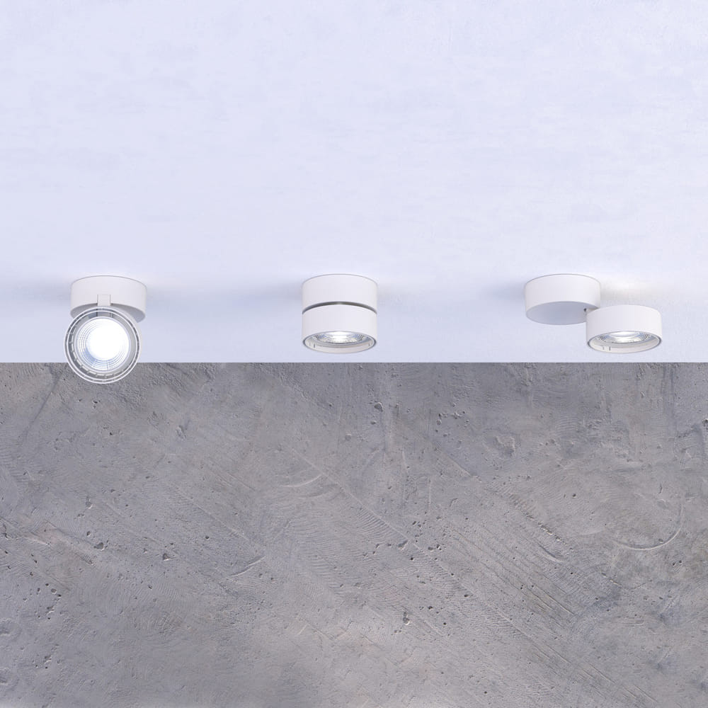 MAKO es un foco de superficie basculante para techo con tecnología led integrada en 3000K. Disponible en acabado blanco o negro texturado.