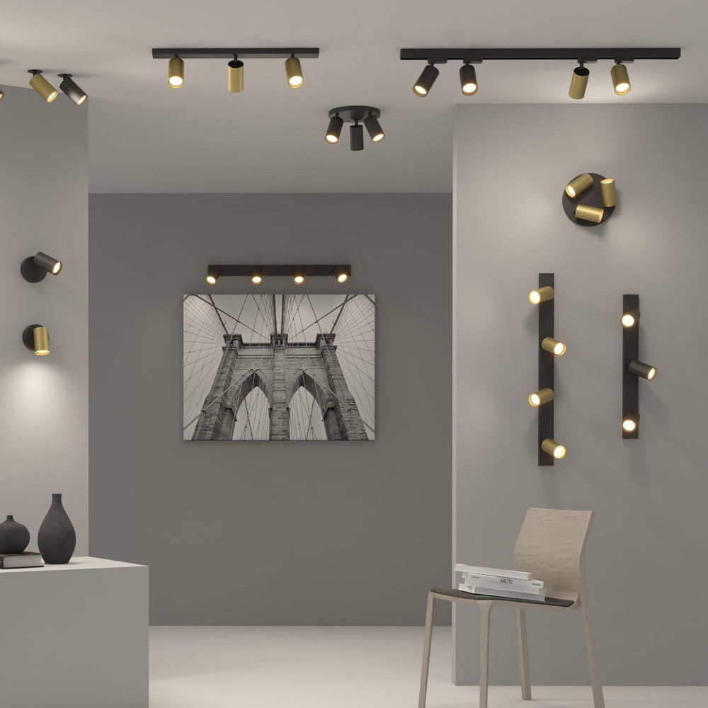 Colección de apliques y plafones orientables que admiten bombilla GU10 (no incluida). Gracias a su ángulo de rotación de 360º, Modrian nos permite dirigir la luz y destacar o iluminar una zona en concreto. Disponibles en 3 acabados diferentes y un sin fin de posibilidades.